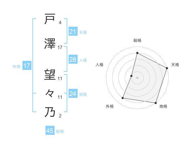 戸澤 望々乃さんを姓名の画数から五運を鑑定