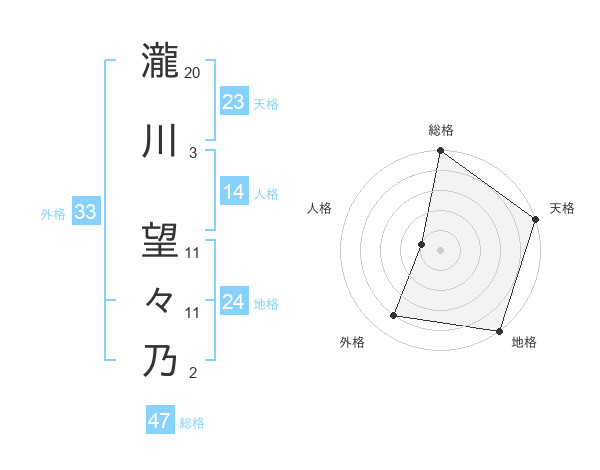 瀧川 望々乃さんの総格は47画の5点!