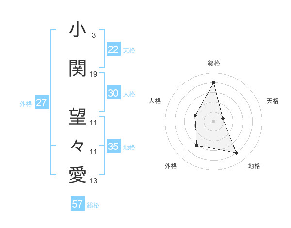 小関 望々愛さんを姓名の画数から五運を鑑定