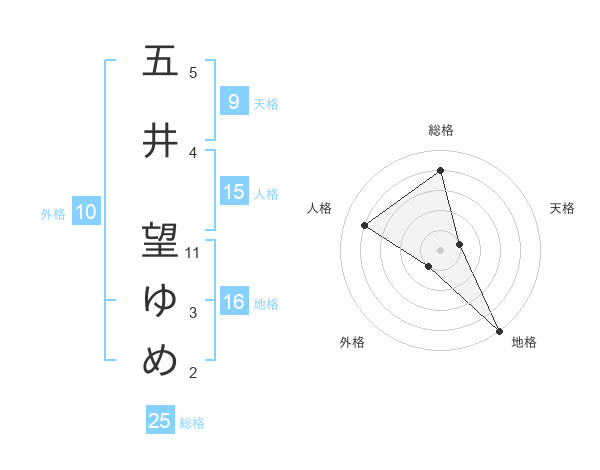 五井 望ゆめさんの総格は25画の4点!