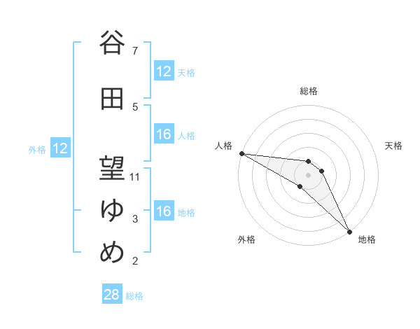 谷田 望ゆめさんを姓名の画数から五運を鑑定