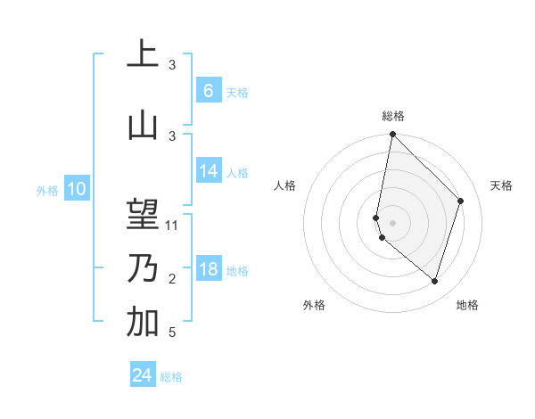 上山 望乃加さんを姓名の画数から五運を鑑定