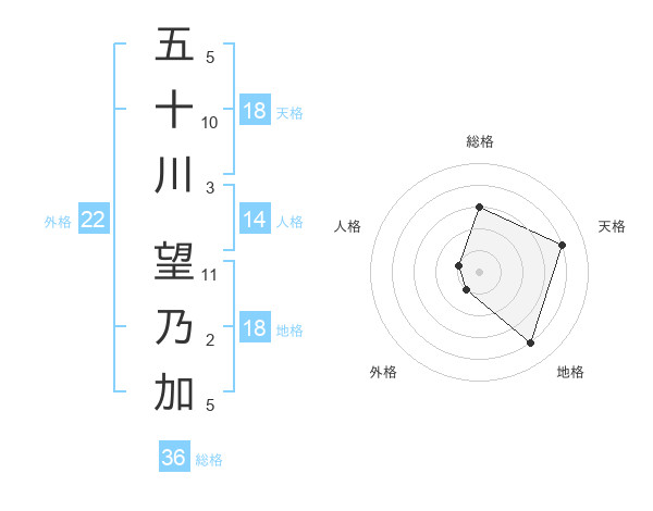 五十川 望乃加さんの天格は18画の4点!