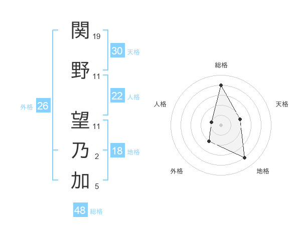 関野 望乃加さんを姓名の画数から五運を鑑定
