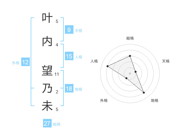 叶内 望乃未さんを姓名の画数から五運を鑑定