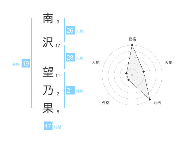 南沢 望乃果さんを姓名の画数から五運を鑑定