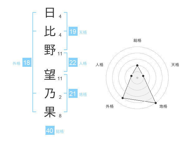 日比野 望乃果さんの外格は18画の4点!
