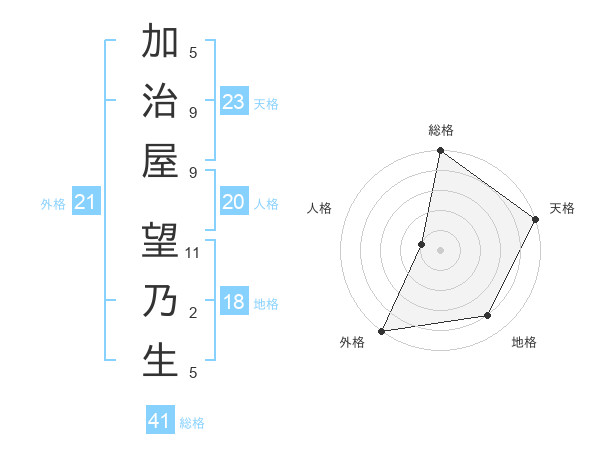 加治屋 望乃生さんを姓名の画数から五運を鑑定