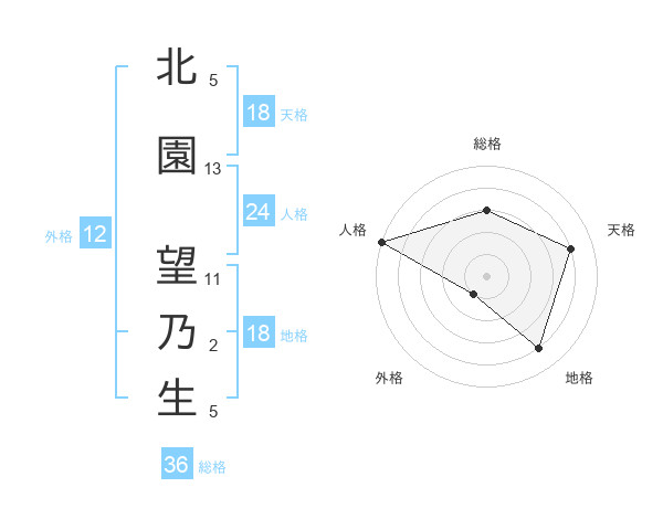 北園 望乃生さんを姓名の画数から五運を鑑定