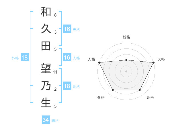 和久田 望乃生さんの天格は16画の5点!