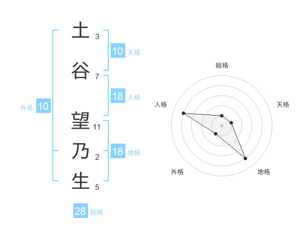 土谷 望乃生さんを姓名の画数から五運を鑑定