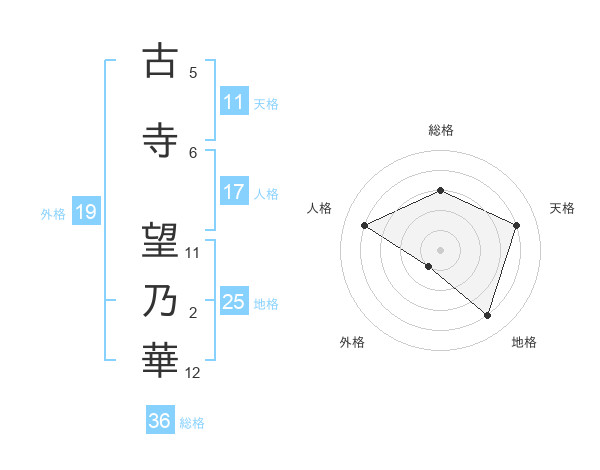 古寺 望乃華さんを姓名の画数から五運を鑑定