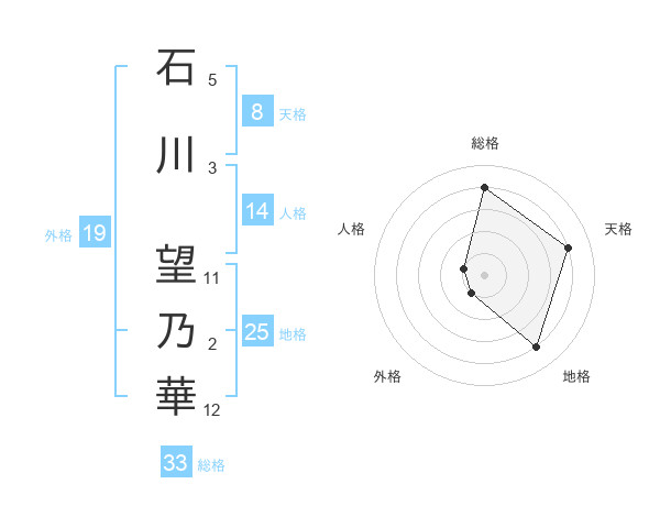 石川 望乃華さんを姓名の画数から五運を鑑定