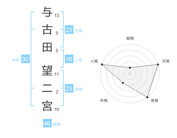 与古田 望二宮さんを姓名の画数から五運を鑑定
