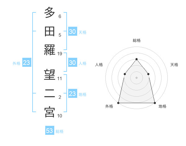 多田羅 望二宮さんの総格は53画の3点!