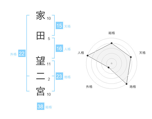 家田 望二宮さんの総格は38画の4点!