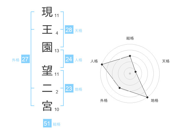 現王園 望二宮さんを姓名の画数から五運を鑑定