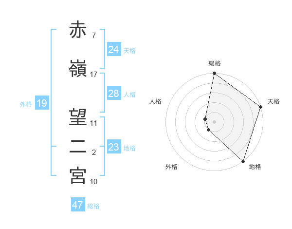 赤嶺 望二宮さんの総格は47画の5点!