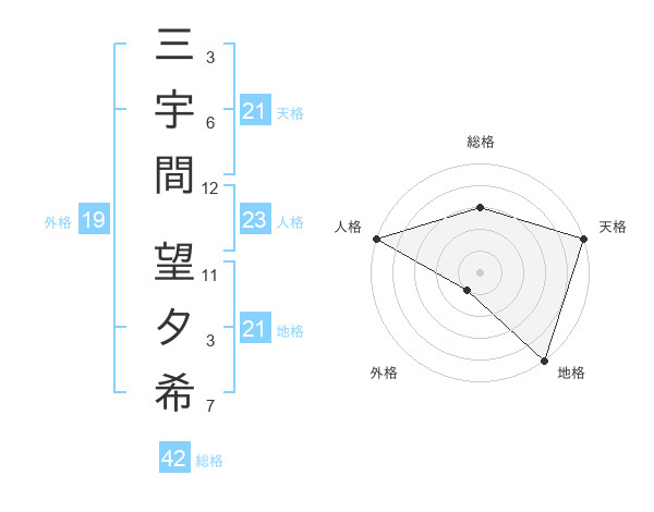 三宇間 望夕希さんを姓名の画数から五運を鑑定