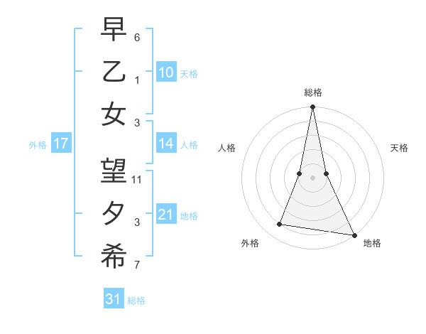 早乙女 望夕希さんを姓名の画数から五運を鑑定