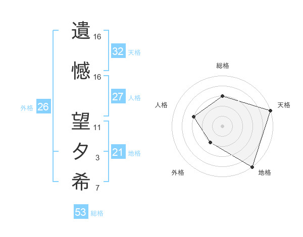 遺憾 望夕希さんを姓名の画数から五運を鑑定
