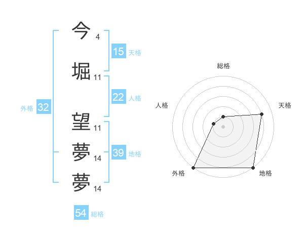 今堀 望夢夢さんを姓名の画数から五運を鑑定