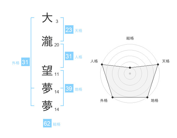 大瀧 望夢夢さんを姓名の画数から五運を鑑定