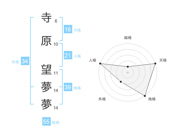 寺原 望夢夢さんの天格は16画の5点!