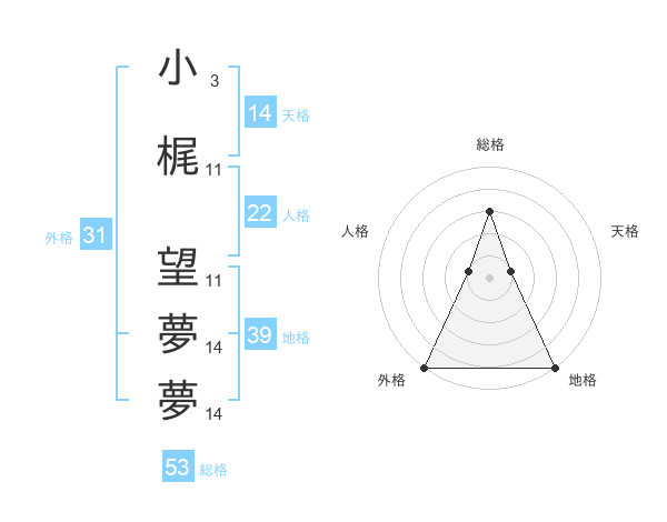 小梶 望夢夢さんの総格は53画の3点!