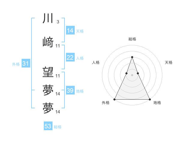 川﨑 望夢夢さんの総格は53画の3点!