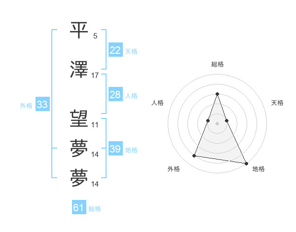 平澤 望夢夢さんの総格は61画の3点