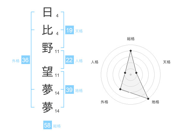 日比野 望夢夢さんを姓名の画数から五運を鑑定