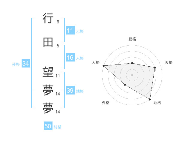 行田 望夢夢さんの総格は50画の2点!