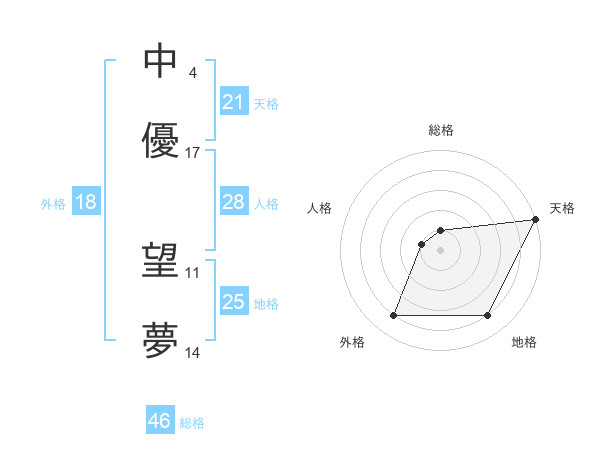 中優 望夢さんの天格は21画の5点!