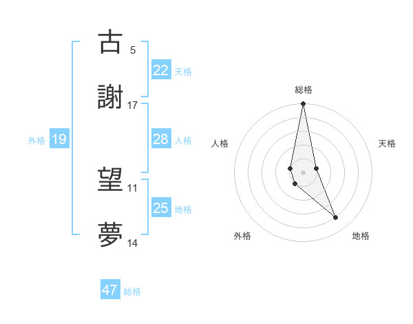 古謝 望夢さんの総格は47画の5点!