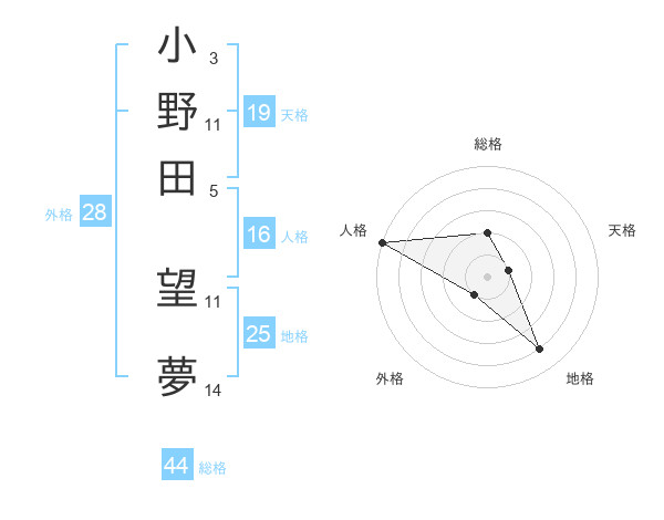小野田 望夢さんを姓名の画数から五運を鑑定