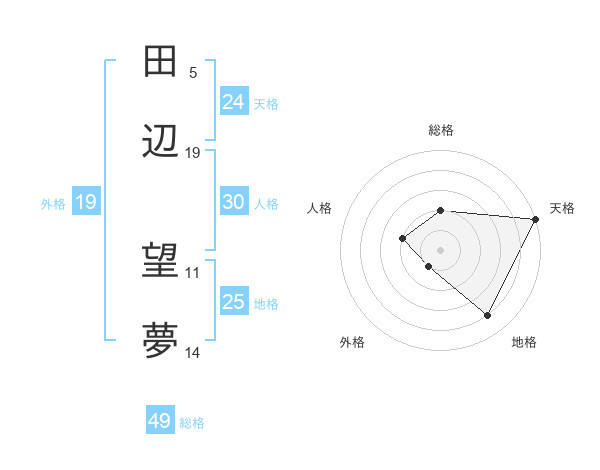 田辺 望夢さんの天格は24画の5点!