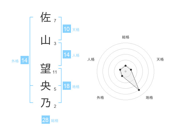 佐山 望央乃さんの総格は28画の1点!