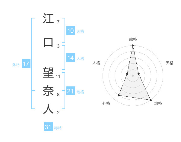 江口 望奈人さんを姓名の画数から五運を鑑定