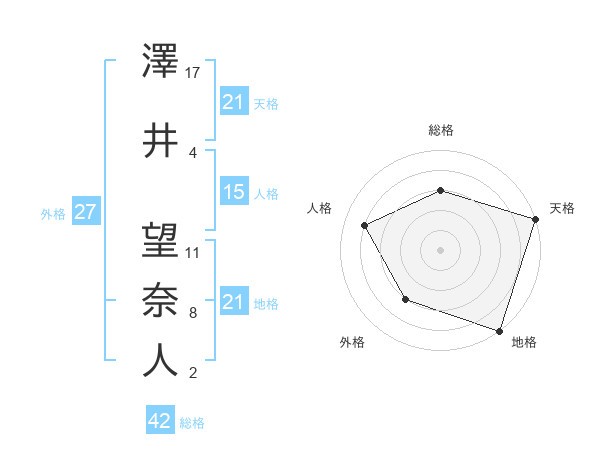 澤井 望奈人さんの地格は21画の5点!