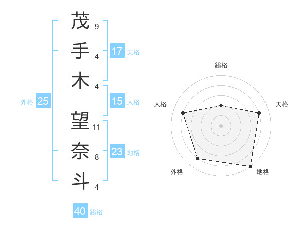 茂手木 望奈斗さんを姓名の画数から五運を鑑定