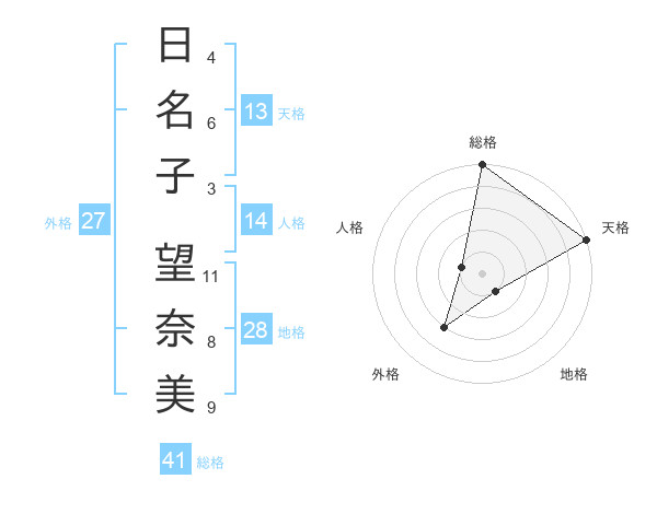 日名子 望奈美さんの総格は41画の5点!