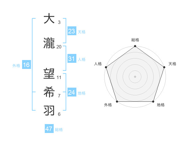 大瀧 望希羽さんを姓名の画数から五運を鑑定