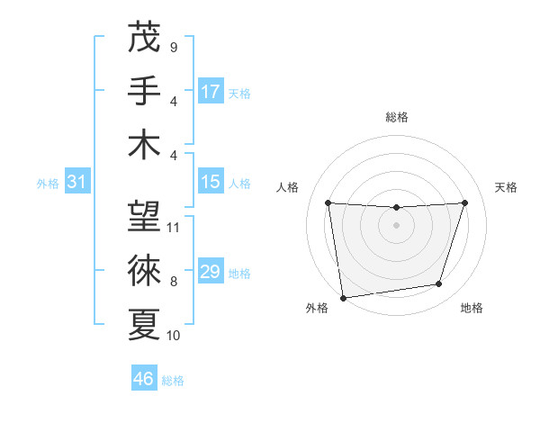 茂手木 望徠夏さんを姓名の画数から五運を鑑定