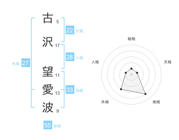 古沢 望愛波さんを姓名の画数から五運を鑑定