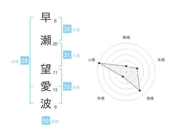 早瀬 望愛波さんの外格は28画の1点!