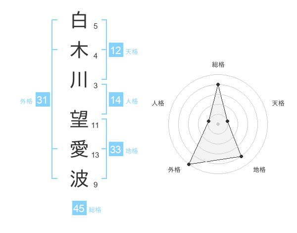 白木川 望愛波さんを姓名の画数から五運を鑑定