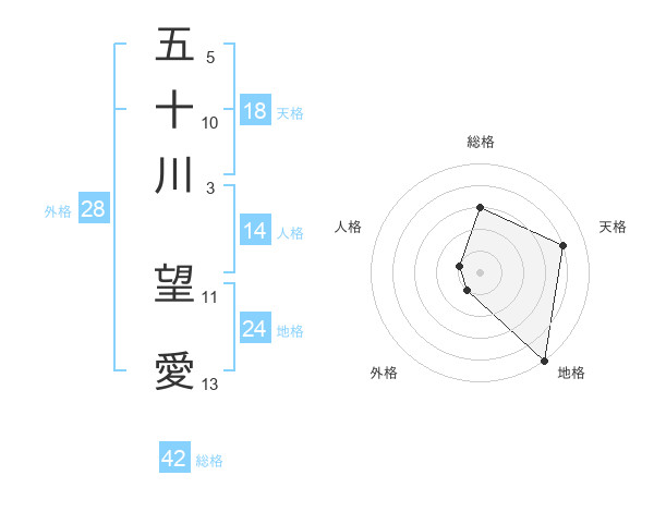 五十川 望愛さんを姓名の画数から五運を鑑定