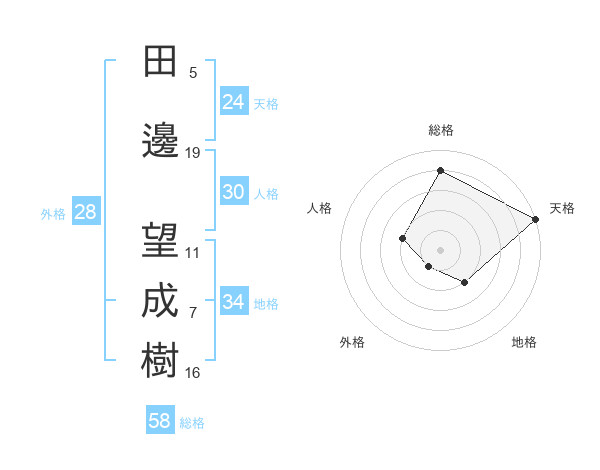 田邊 望成樹さんの総格は58画の4点!