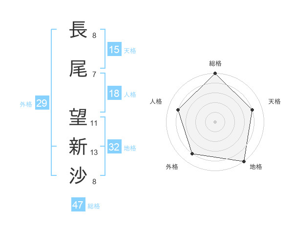 長尾 望新沙さんを姓名の画数から五運を鑑定